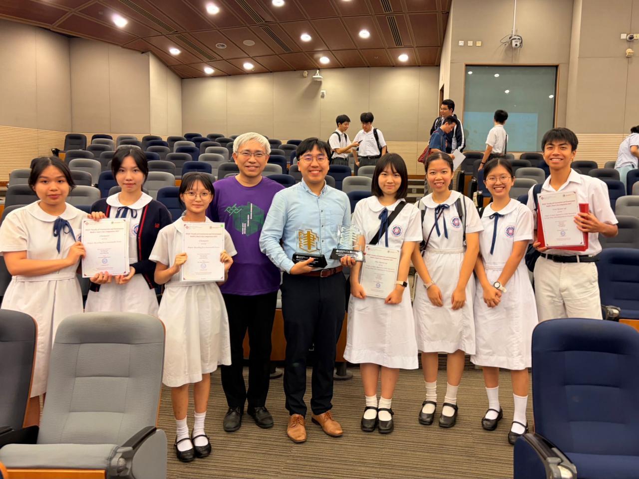 五信班林詠柔、梁靖敏及五愛班余冠閱憑藉於北部都會區發展本地農業及玻璃回收的新理念,結合令評判印象深刻的建築設計,在比賽中勇奪冠軍。而五愛班陳籽怡、方𤋮然、郭靜悠及葉松叡提出重塑土瓜灣十三街及牛棚藝術村,透過不同市區更新方法為社區注入活力,榮獲亞軍。
